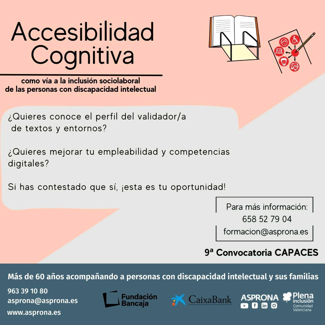 La accesibilidad cognitiva como vía a la inclusión sociolaboral de las personas con discapacidad intelectual La accesibilidad cognitiva es la característica que tienen las cosas, los espacios o los textosque hace que los entiendan todas las personas. Para adaptar estos espacios y textos necesitamos equipos de validadores. @Asprona realiza cursos de formación en accesibilidad cognitivaSigue leyendo «Accesibilidad Cognitiva: ASPRONA»