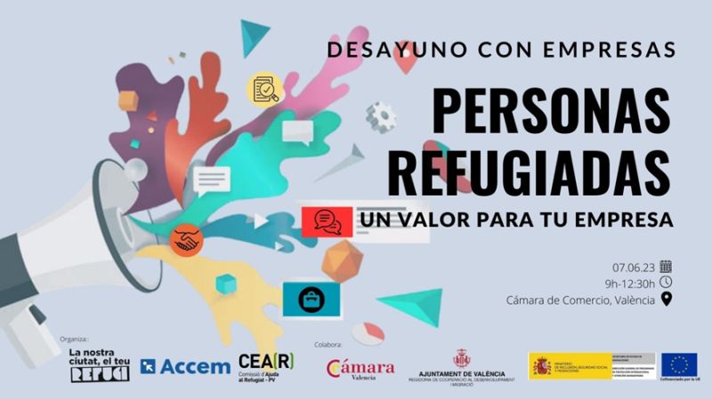 Desde Comisión Española de Ayuda al Refugiado (CEAR) Valencia os invitamos al Desayuno con empresas “Personas Refugiadas: Un valor para tu empresa” el próximo día 7 de junio, de 9:00h a 12:30 en las instalaciones de la Cámara Valencia. En este último año, hemos sido testigo de diferentes cambios en materia de empleo, a nivel internacional y estatal, que nos dirigen hacia unos contextosSigue leyendo ««Personas Refugiadas: Un valor para tu empresa», desayuno con empresas organizado por CEAR y ACCEM»