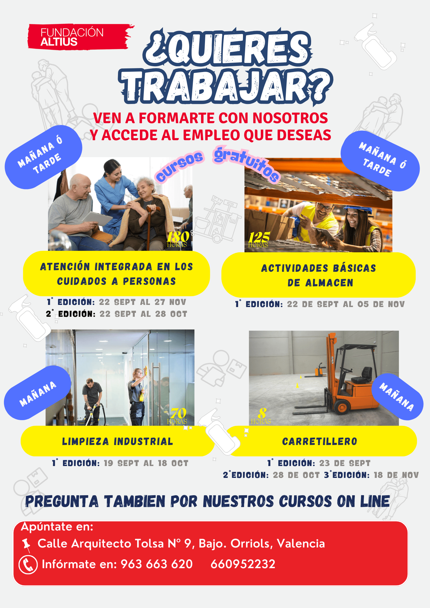 Fundación Altius Valencia presenta su programa de formación para el empleo del cuarto trimestre de 2025. El programa consta de 7 acciones formativas distintas con las que pretendemos mejorar la empleabilidad de las personas en situación de exclusión sociolaboral a las que se dirigen y generar, así, oportunidades reales de inserción laboral. Las propuestas formativasSigue leyendo «La formación como herramienta de inserción sociolaboral: Fundación Altius Valencia presenta su programa formativo»
