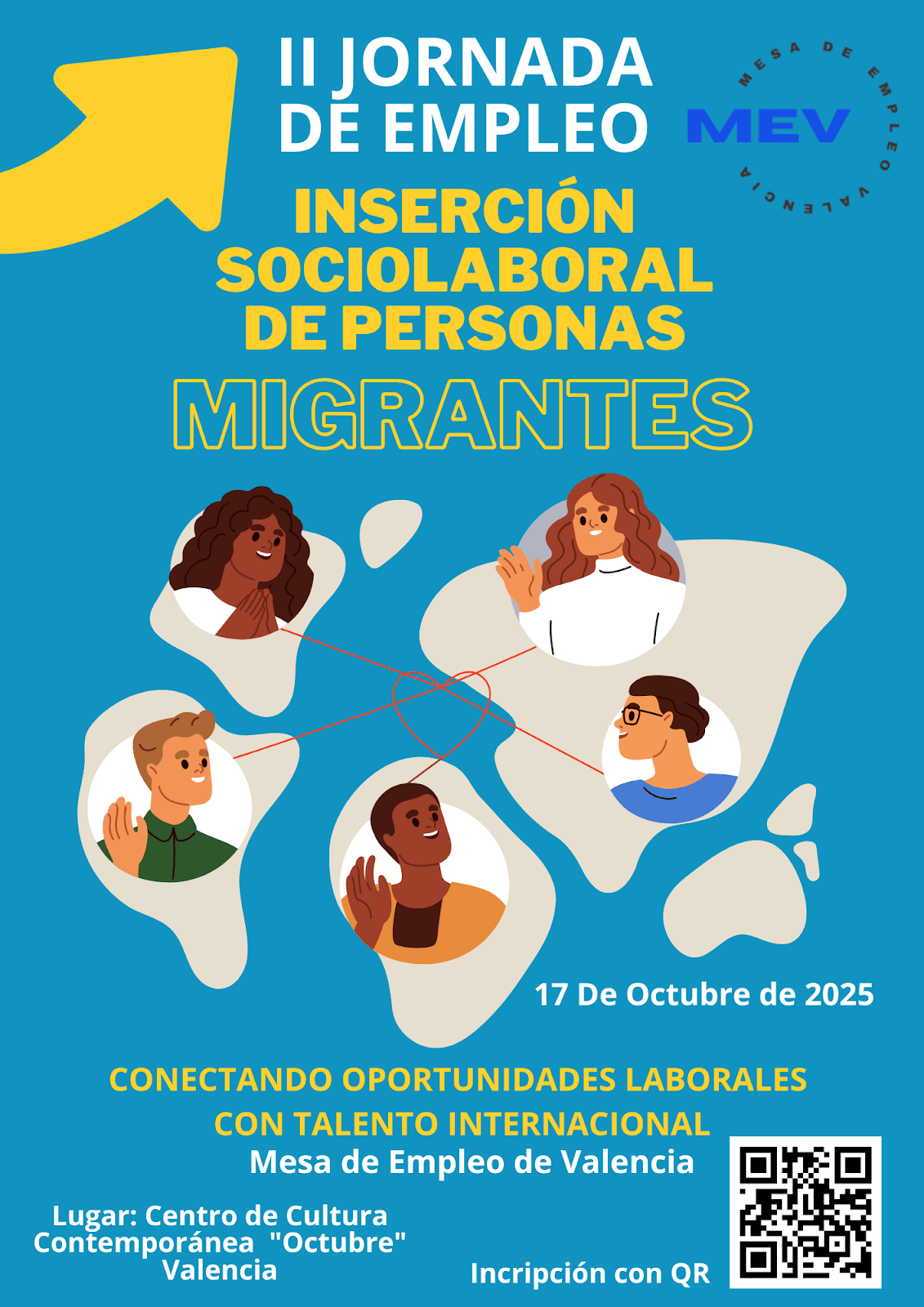 Ya podemos anunciar la II Jornada de Inserción Sociolaboral de Personas Migrantes, organizada por la Mesa de Empleo Valencia. La Mesa de Empleo Valencia ofrecerá un espacio de diálogo y colaboración entre profesionales del ámbito empresarial y representantes de entidades sociales y organismos públicos y privados: 🔹 Novedades en extranjería y su impacto en laSigue leyendo «II Jornada Inserción Sociolaboral de Personas Migrantes»
