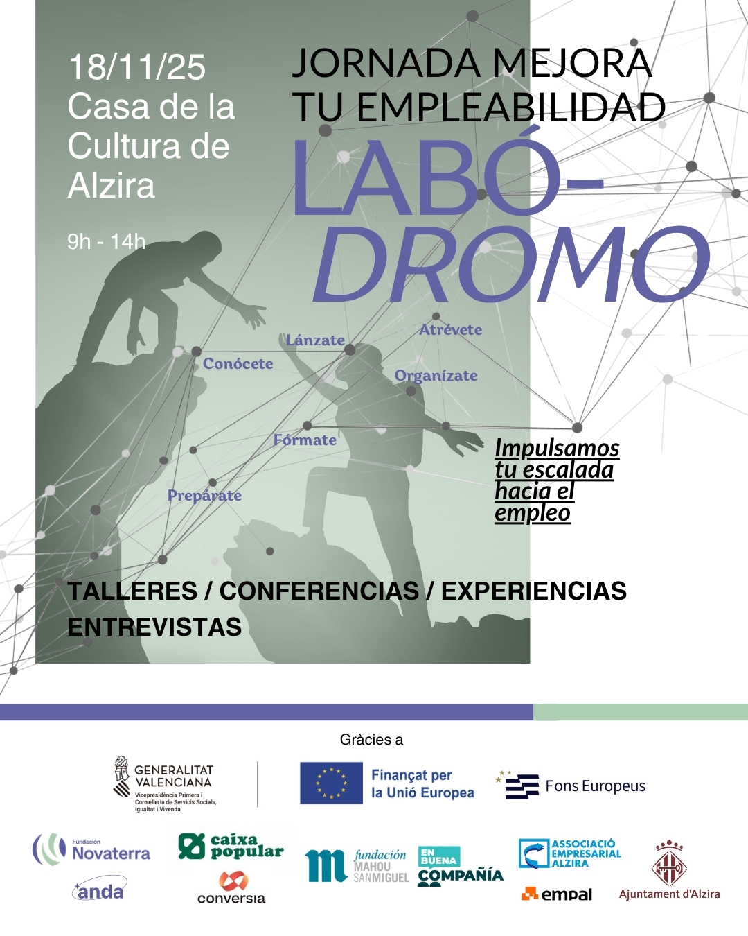 Fundación Novaterra, con más de 30 años de experiencia en el acompañamiento para la inclusión sociolaboral, celebrará el próximo 18 de noviembre, de 9:00 a 14:00 horas, en la Casa de la Cultura de Alzira, el primer LABÓDROMO por la DANA, una jornada dedicada a la mejora de la empleabilidad. El evento se presenta comoSigue leyendo «Fundación Novaterra lanza el LABÓDROMO: una jornada transformadora en Alzira para impulsar la empleabilidad post-DANA»