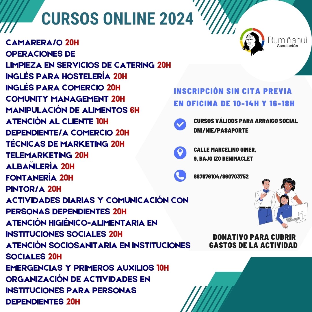 Desde el área laboral de la Asociación Rumiñahui Valencia nos complace ofreceros nuestros «Cursos Online 2024» ✨ 💼 Descubre herramientas para la inserción laboral, desarrollo de habilidades profesionales, emprendimiento y más. Todos los cursos son online y tienen un valor mínimo dependiendo las horas de duración: Los Cursos de 6 Horas tienen un valor deSigue leyendo «Cursos Online 2024: Asociación Rumiñahui»